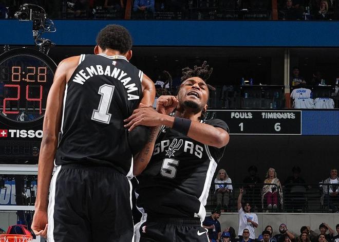 不过,如今最让这对组合兴奋的还是马刺队的强势开局——目前8胜3负,这是自2016-17赛季以来他们的最佳开局,他们看到了重返季后赛的希望。今年二月,文班亚马因右肩深静脉血栓将缺席2024-25赛季剩余比赛的消息传出,他们的未来一度充满迷茫。毕竟静脉血栓有过让球员提前退役的案例。所幸,现在的医疗已经变得更加发达,文班亚马经过数个月的治疗,已经战胜了疾病,并且回到了赛场。这位法国天才球员在九月下旬宣称:“今年夏天没有人像我这样训练过。”