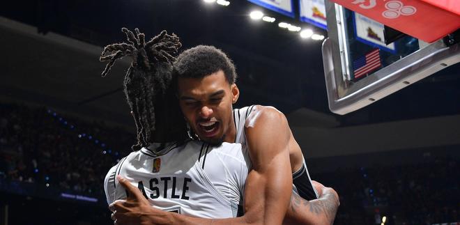 然而,要真正配得上这个绰号,需要付出努力和时间。11月初的两连败期间,文班亚马在对手严密的包夹下表现挣扎,两场比赛合计仅得28分,投篮命中率只有32.1%,并且出现了11次失误。而同期,卡斯尔的投篮命中率44.8%,失误次数达到9次。尽管如此,很明显,这对组合在合作的第一个完整赛季中已经取得了长足的进步。